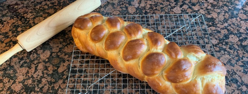 One of the benefits of having Kourtney at home (since she works in theatre and they are not starting back up anytime soon) is that she has been baking constantly. Last week she made apple pie, blueberry cheesecake, and puff pastry with strawberries. This week we’ve been eating strawberry shortcake, broccoli and cheddar pasties. But my favorite new tradition is the challah she makes every Friday, from scratch.