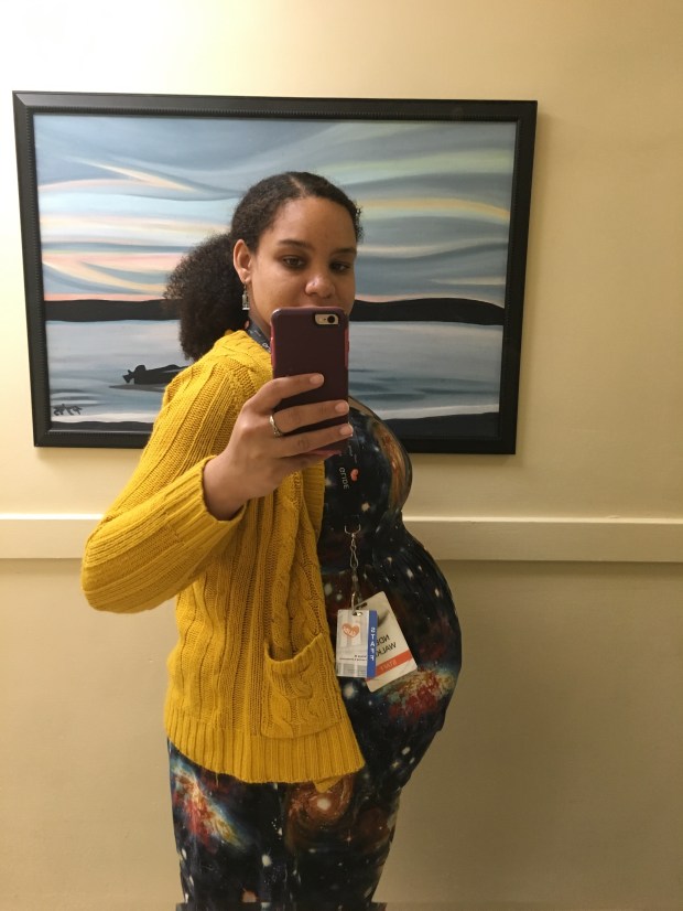 38 weeks pregnant, my last day of work before I went on maternity leave